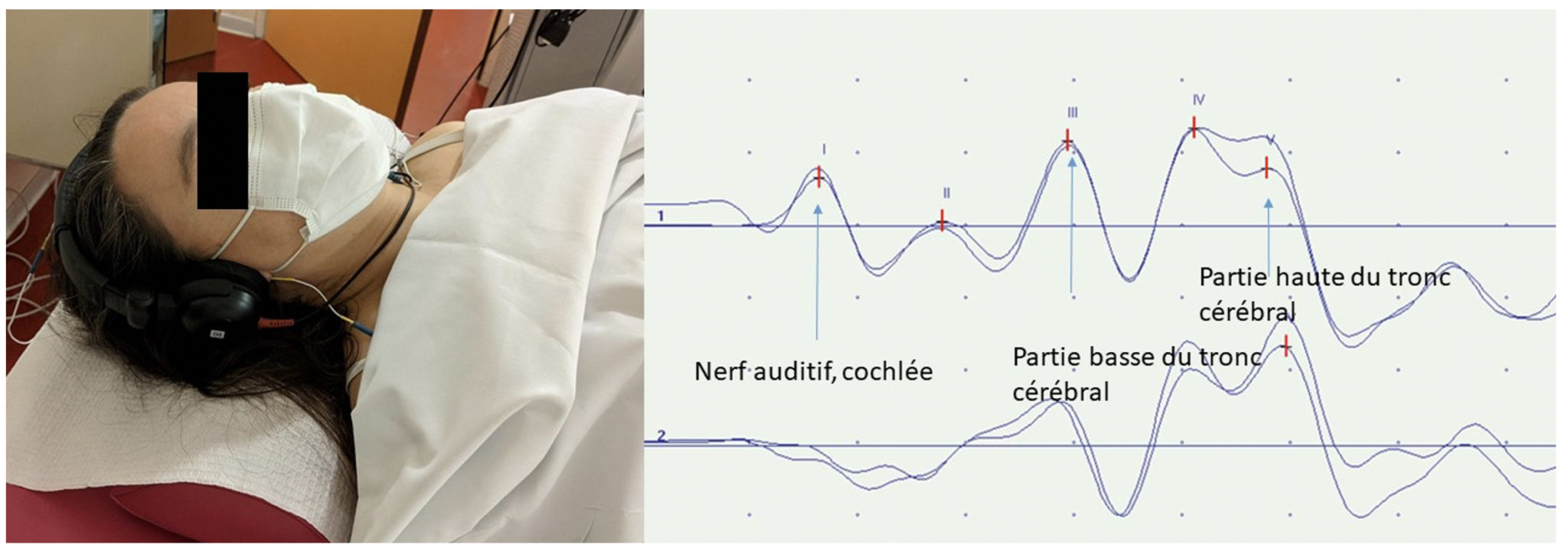La stimulation s’effectue à l’aide d’un casque auditif ou d’écouteurs qui transmettent à l’oreille des sons élémentaires (clics…) à une intensité modérée et très supportable.