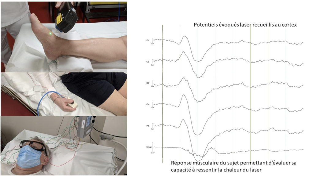 La stimulation est effectuée à l’aide d’un stimulateur laser que l’on déplace sur différents sites de stimulation en fonction de l’indication de l’examen. La sensation perçue peut être une légère chaleur, un picotement, comme un poil qu’on tire, mais elle est toujours réglée de façon à être tout à fait supportable.